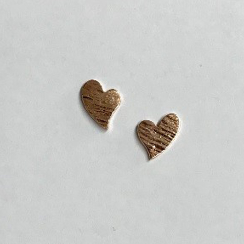 We design and make earrings to order. These 9ct rose gold heart shape stud earrings with a scratched finish are designed for pierced ears and have a gold post and scroll. The earrings are hand made here in our workshop by highly experienced goldsmiths and can be made in white, yellow or rose gold, or a combination of golds, also a selection of different finishes. The cost will depend on the size and weight of the earrings. If you are interested in having a piece of gold jewellery made please contact us on 01786 446600 or email: info@ahdors.co.uk and arrange an appointment with our designer, or can be discussed over the phone.