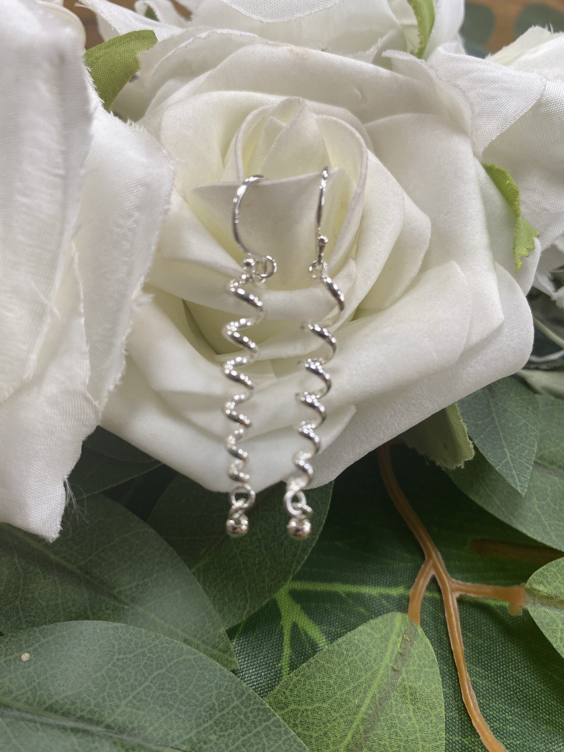Sterling silver spiral drop earrings. These earrings are designed for pierced ears and have a silver hook fitting. If you would like more information about this product please contact us on 01786 446600 or email info@ahdors.co.uk All of our silver jewellery comes in a beautiful presentation box.