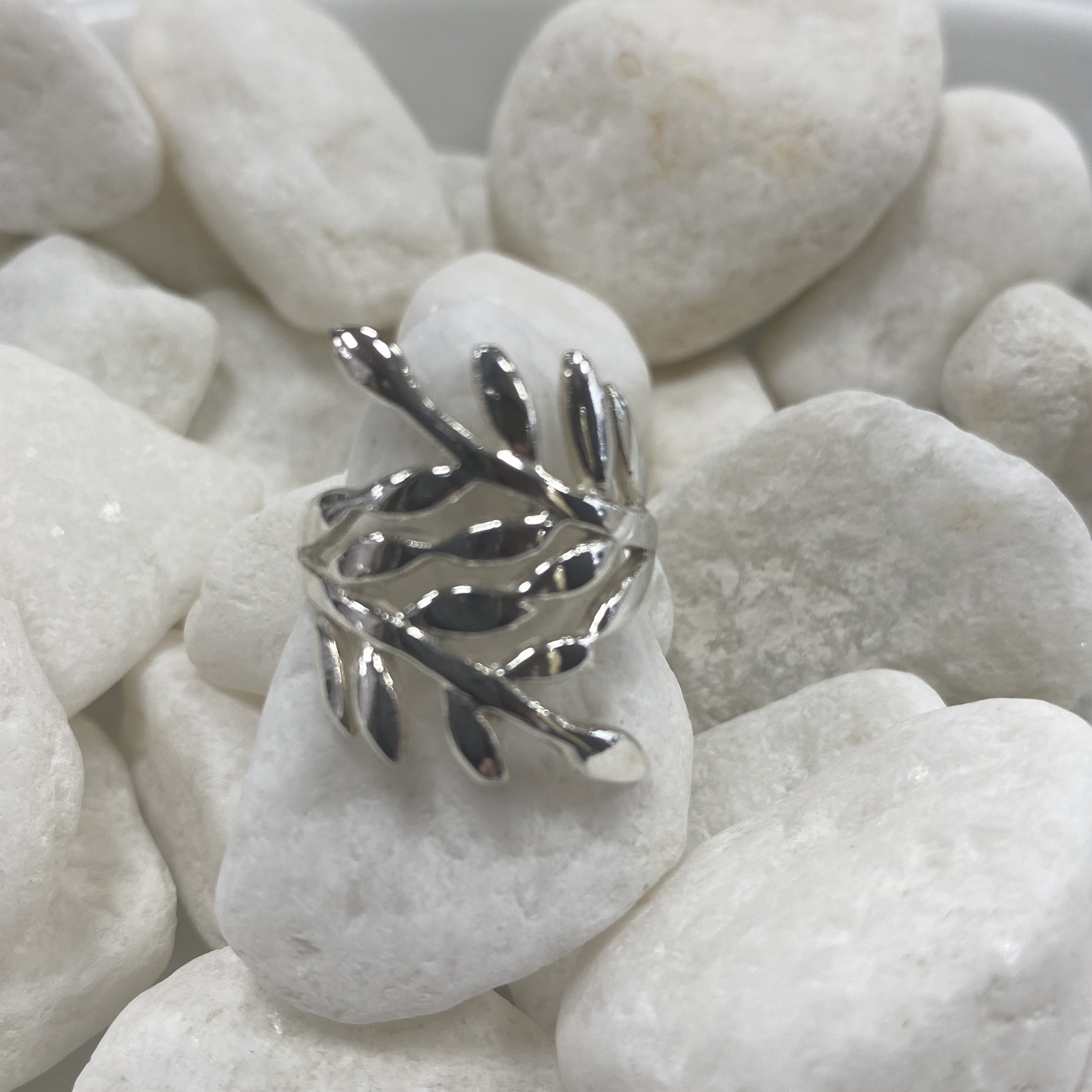 Delicately sculpted leaf motifs that wrap around the finger, make a statement with this stunning sterling silver ring.