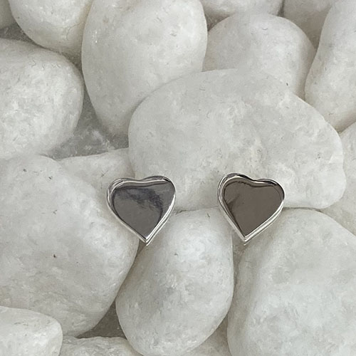 Sterling silver polished solid 8mm heart shaped stud earrings.